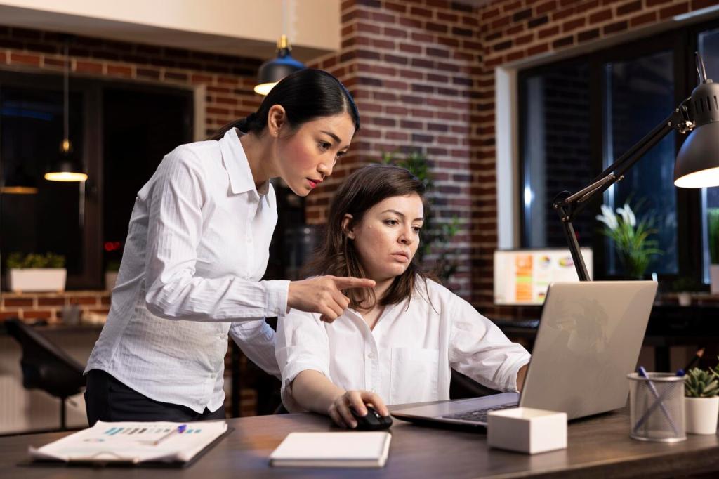Durch das geteilte Journal fielen Abweichungen sofort auf. Der Abschluss wurde planbarer, Rückfragen sanken deutlich. Abonniere und erhalte unser Template zur Planung eines zwölf‑Wochen‑Piloten mit messbaren Erfolgskriterien.